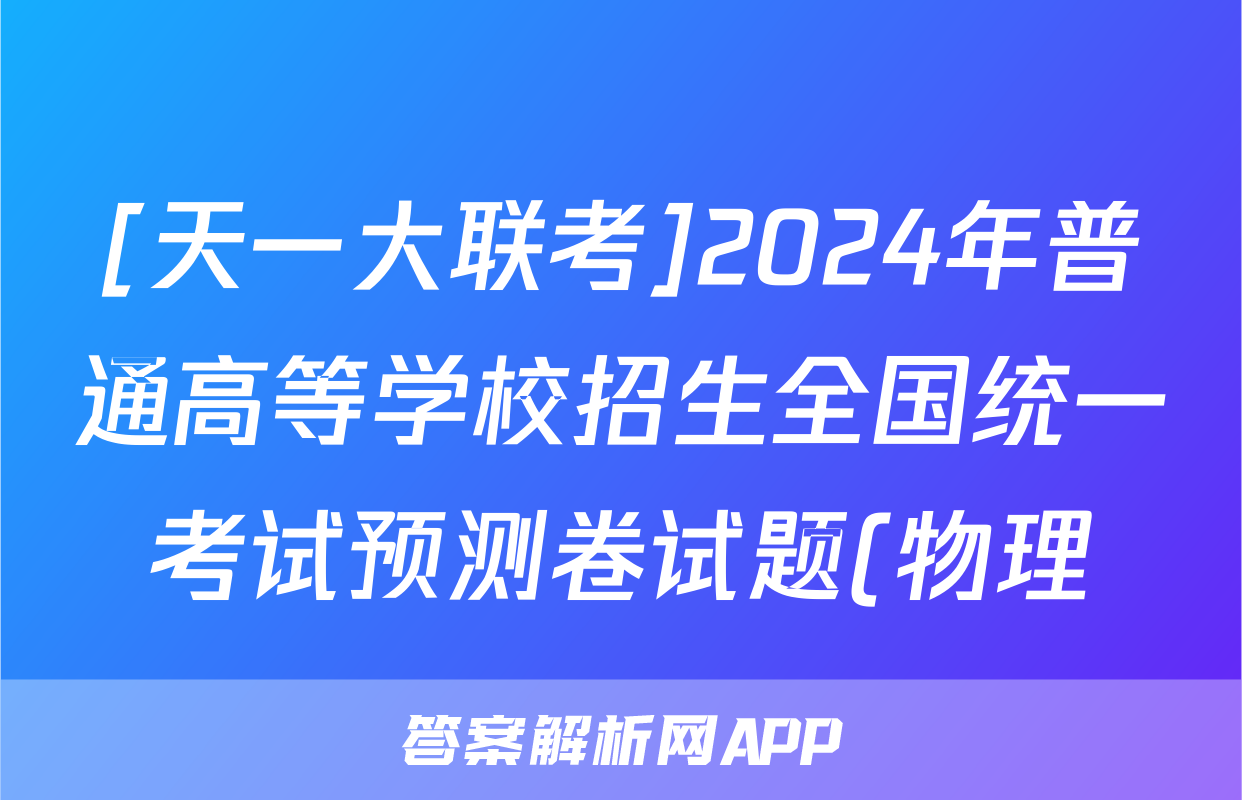 [天一大联考]2024年普通高等学校招生全国统一考试预测卷试题(物理)正在持续更新,目前2026届黄冈八模答案网为大家整理了相关试题及答案,供大家查缺补漏,高效提升成绩。