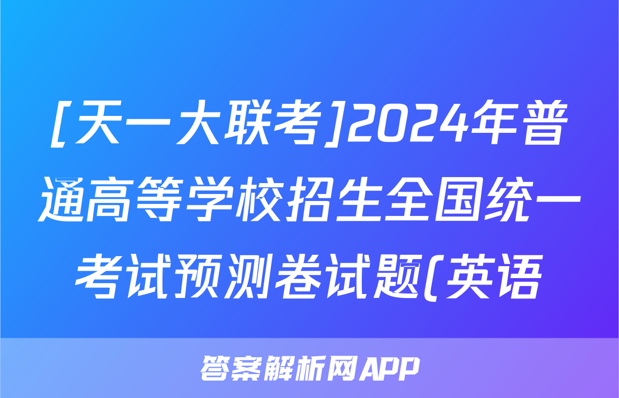 [天一大联考]2024年普通高等学校招生全国统一考试预测卷试题(英语)正在持续更新,目前2026届黄冈八模答案网为大家整理了相关试题及答案,供大家查缺补漏,高效提升成绩。
