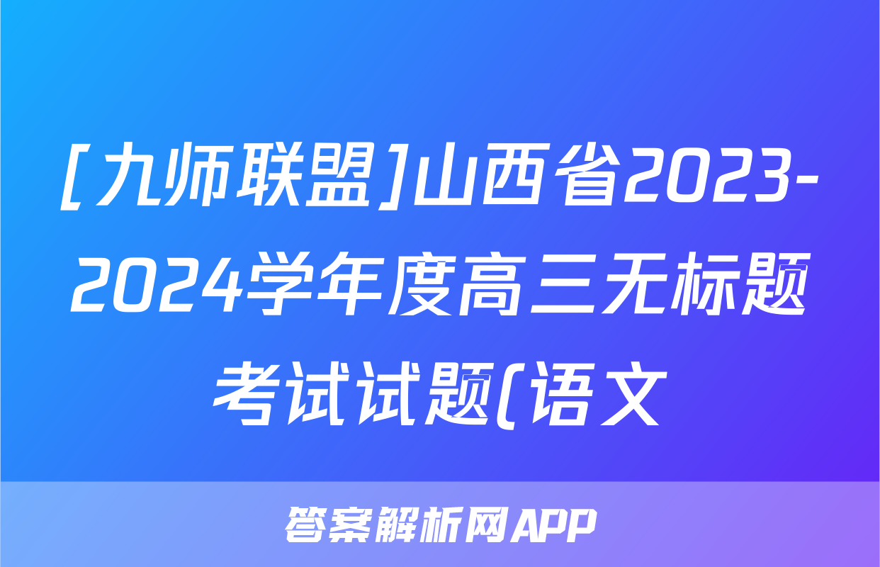 [九师联盟]山西省2023-2024学年度高三无标题考试试题(语文)正在持续更新,目前2026届黄冈八模答案网为大家整理了相关试题及答案,供大家查缺补漏,高效提升成绩。