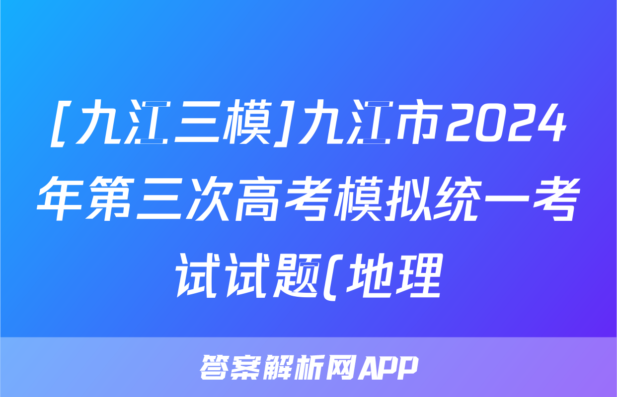[九江三模]九江市2024年第三次高考模拟统一考试试题(地理)正在持续更新,目前2026届黄冈八模答案网为大家整理了相关试题及答案,供大家查缺补漏,高效提升成绩。