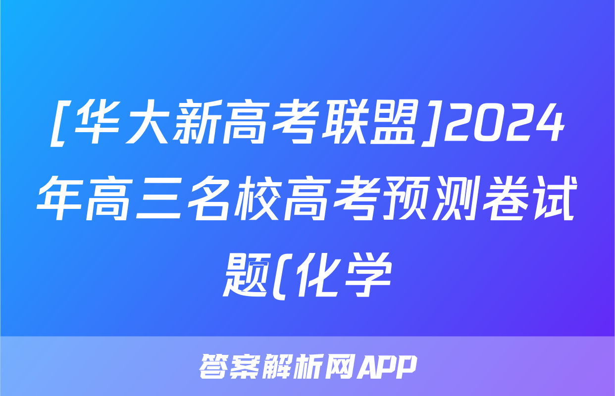 [华大新高考联盟]2024年高三名校高考预测卷试题(化学)正在持续更新,目前2026届黄冈八模答案网为大家整理了相关试题及答案,供大家查缺补漏,高效提升成绩。