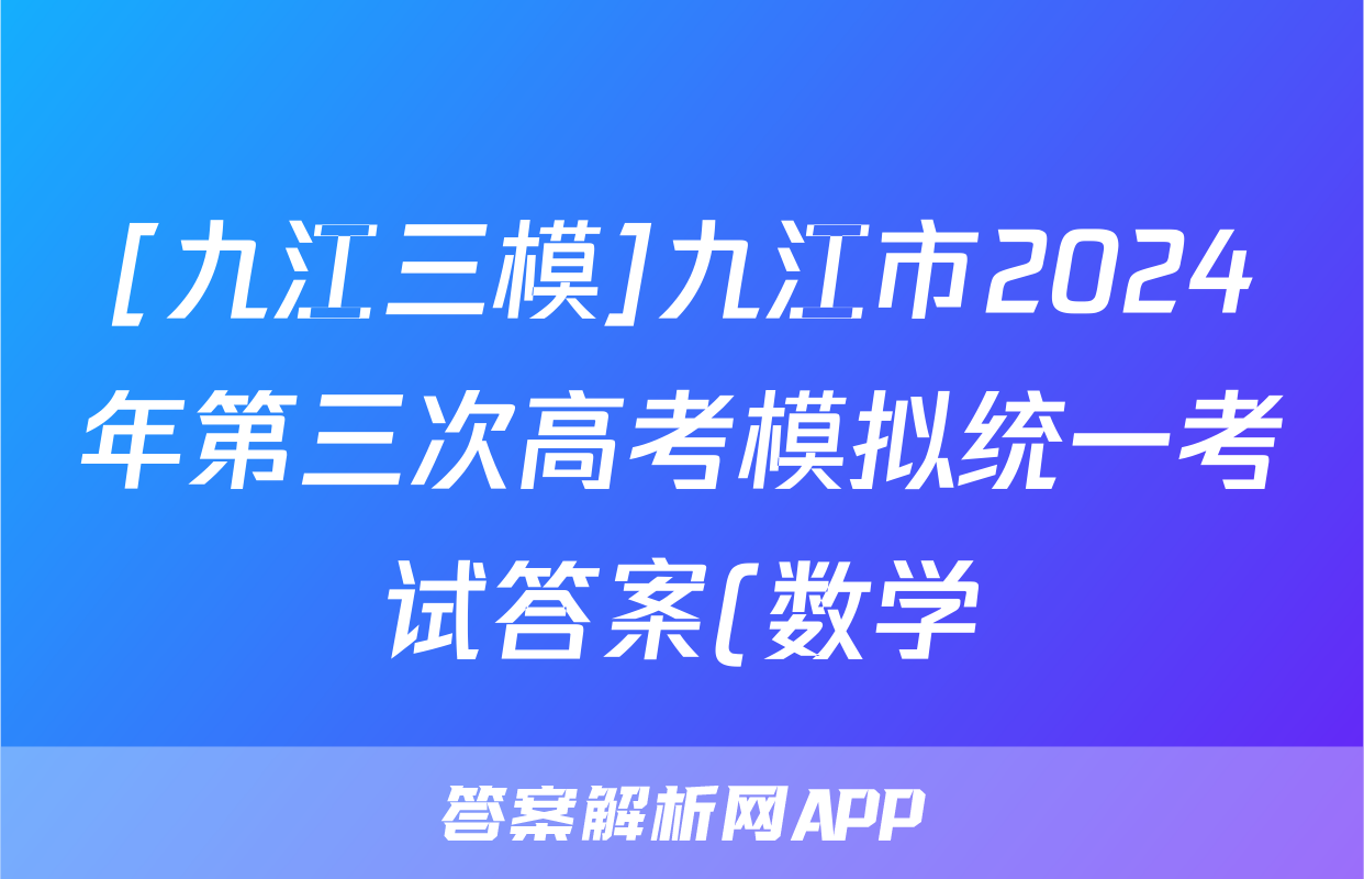 [九江三模]九江市2024年第三次高考模拟统一考试答案(数学)正在持续更新,目前2026届黄冈八模答案网为大家整理了相关试题及答案,供大家查缺补漏,高效提升成绩。
