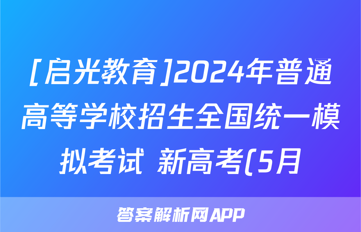 [启光教育]2024年普通高等学校招生全国统一模拟考试 新高考(5月)答案(物理)正在持续更新,目前2026届黄冈八模答案网为大家整理了相关试题及答案,供大家查缺补漏,高效提升成绩。