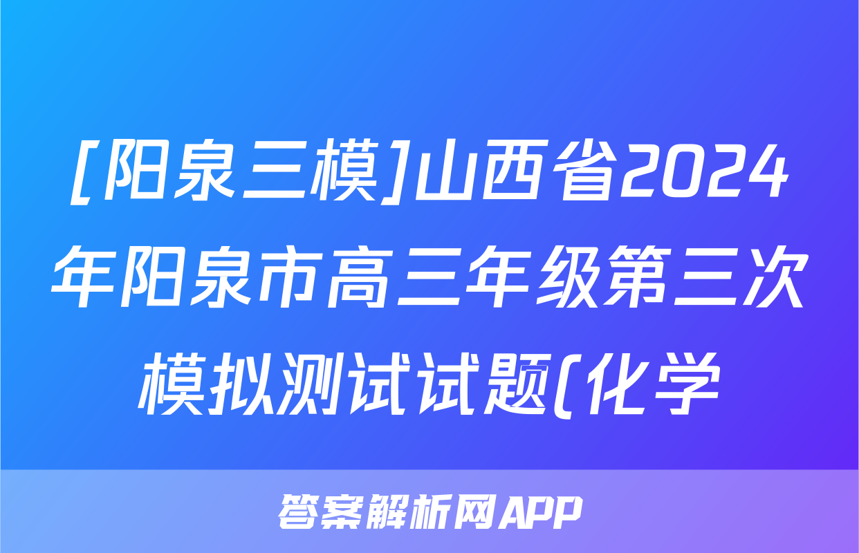[阳泉三模]山西省2024年阳泉市高三年级第三次模拟测试试题(化学)正在持续更新,目前2026届黄冈八模答案网为大家整理了相关试题及答案,供大家查缺补漏,高效提升成绩。
