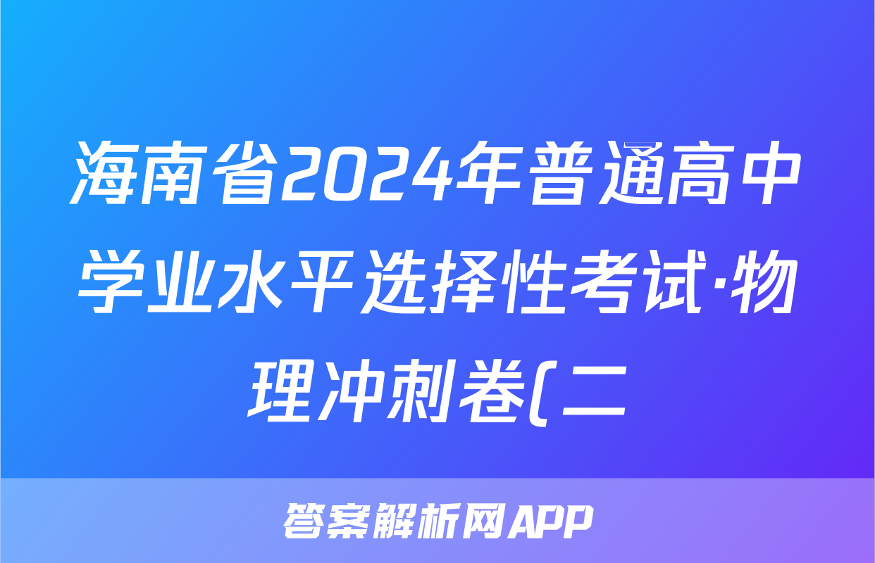 海南省2024年普通高中学业水平选择性考试·物理冲刺卷(二)2[24·(新高考)CCJ·物理·HAIN]答案正在持续更新,目前2026届黄冈八模答案网为大家整理了相关试题及答案,供大家查缺补漏,高效提升成绩。