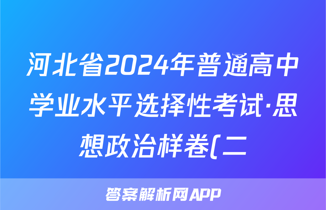 河北省2024年普通高中学业水平选择性考试·思想政治样卷(二)2[24·(新高考)高考样卷·思想政治·HEB]试题正在持续更新,目前2026届黄冈八模答案网为大家整理了相关试题及答案,供大家查缺补漏,高效提升成绩。