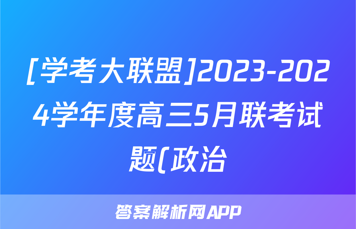 [学考大联盟]2023-2024学年度高三5月联考试题(政治)正在持续更新,目前2026届黄冈八模答案网为大家整理了相关试题及答案,供大家查缺补漏,高效提升成绩。