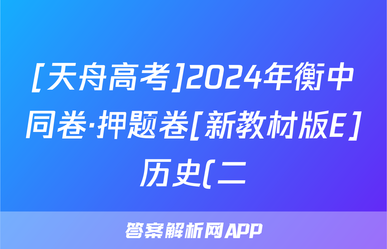 [天舟高考]2024年衡中同卷·押题卷[新教材版E]历史(二)2试题正在持续更新,目前2026届黄冈八模答案网为大家整理了相关试题及答案,供大家查缺补漏,高效提升成绩。