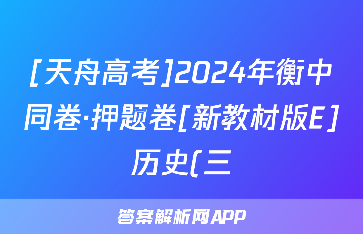 [天舟高考]2024年衡中同卷·押题卷[新教材版E]历史(三)3答案正在持续更新,目前2026届黄冈八模答案网为大家整理了相关试题及答案,供大家查缺补漏,高效提升成绩。