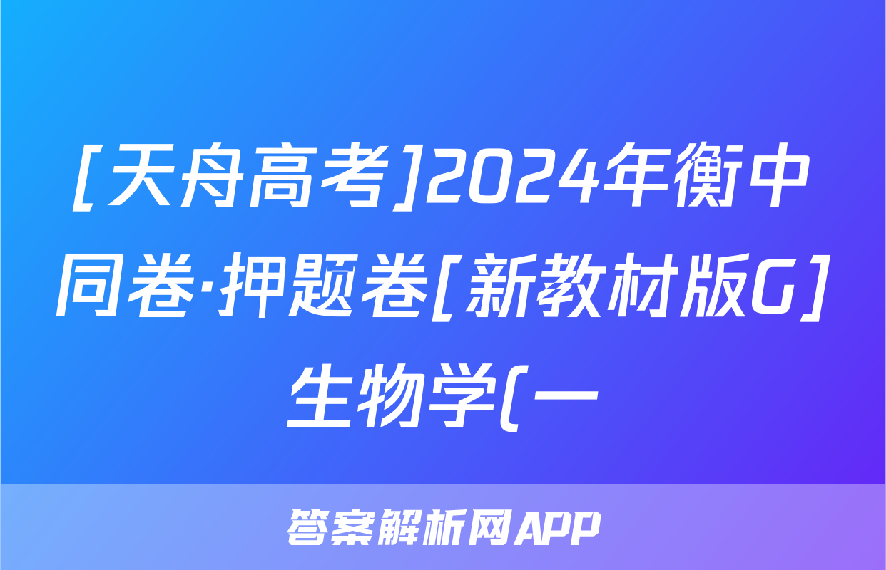 [天舟高考]2024年衡中同卷·押题卷[新教材版G]生物学(一)1答案