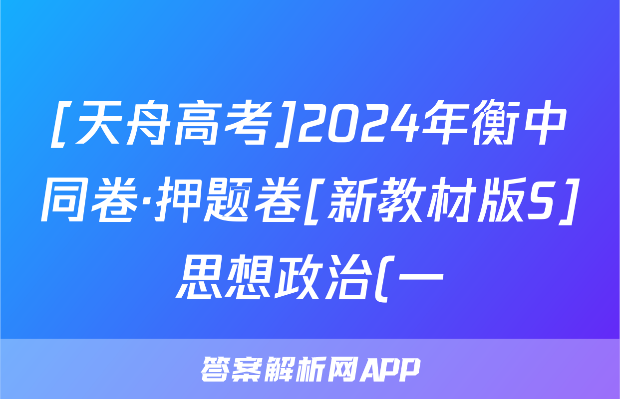 [天舟高考]2024年衡中同卷·押题卷[新教材版S]思想政治(一)1答案
