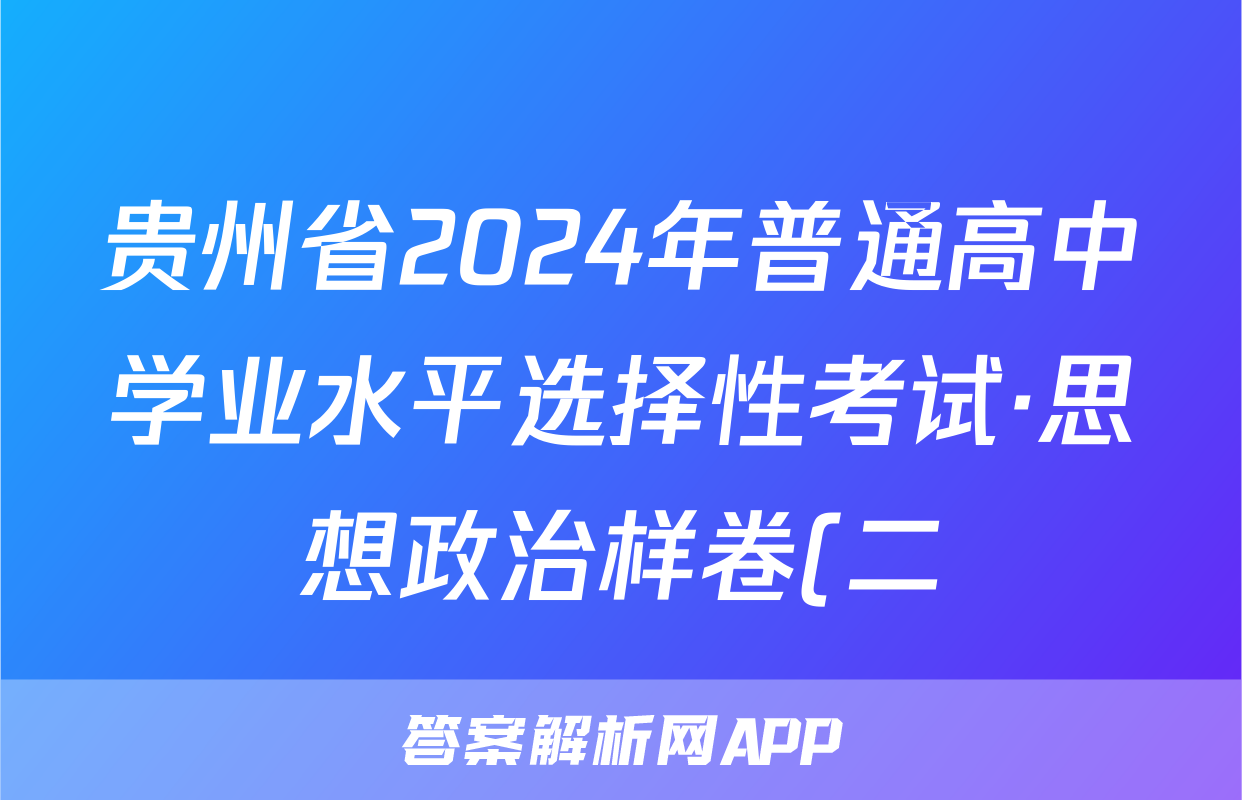 贵州省2024年普通高中学业水平选择性考试·思想政治样卷(二)2[24·(新高考)高考样卷·思想政治·GZ]答案正在持续更新,目前2026届黄冈八模答案网为大家整理了相关试题及答案,供大家查缺补漏,高效提升成绩。