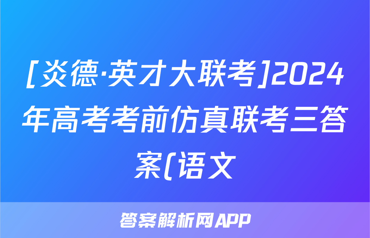 [炎德·英才大联考]2024年高考考前仿真联考三答案(语文)正在持续更新,目前2026届黄冈八模答案网为大家整理了相关试题及答案,供大家查缺补漏,高效提升成绩。