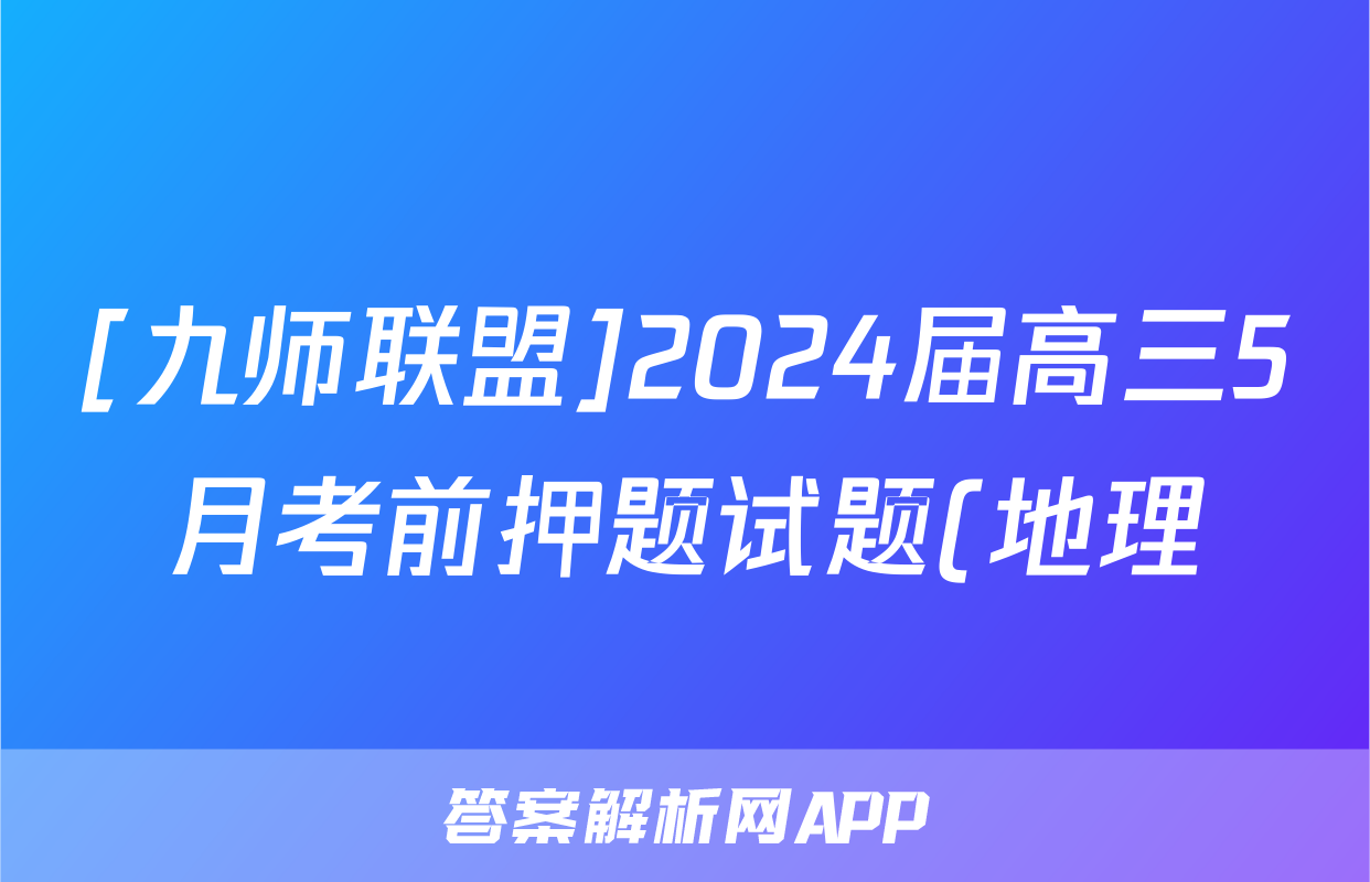 [九师联盟]2024届高三5月考前押题试题(地理)正在持续更新,目前2026届黄冈八模答案网为大家整理了相关试题及答案,供大家查缺补漏,高效提升成绩。