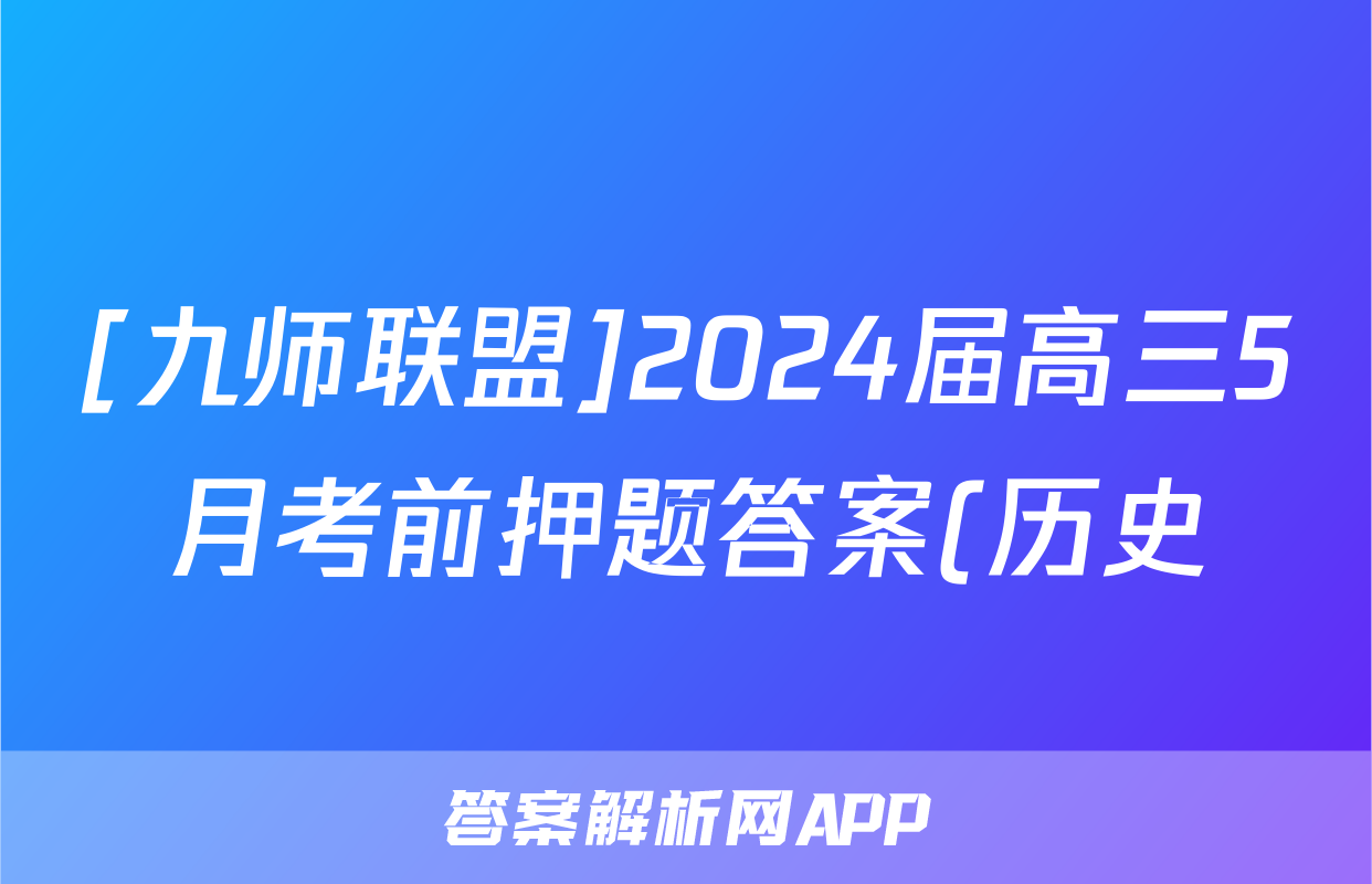 [九师联盟]2024届高三5月考前押题答案(历史)正在持续更新,目前2026届黄冈八模答案网为大家整理了相关试题及答案,供大家查缺补漏,高效提升成绩。
