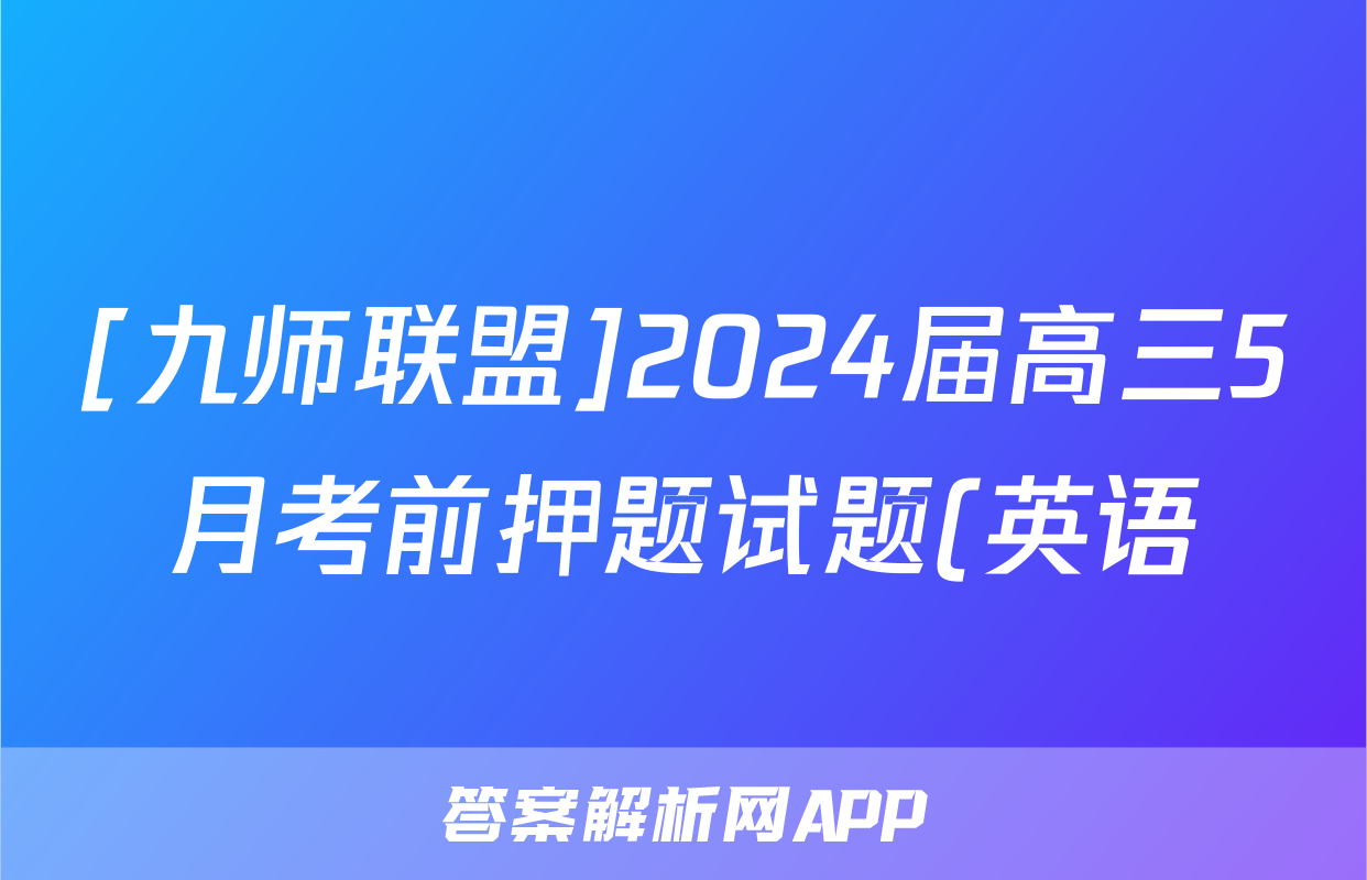 [九师联盟]2024届高三5月考前押题试题(英语)正在持续更新,目前2026届黄冈八模答案网为大家整理了相关试题及答案,供大家查缺补漏,高效提升成绩。