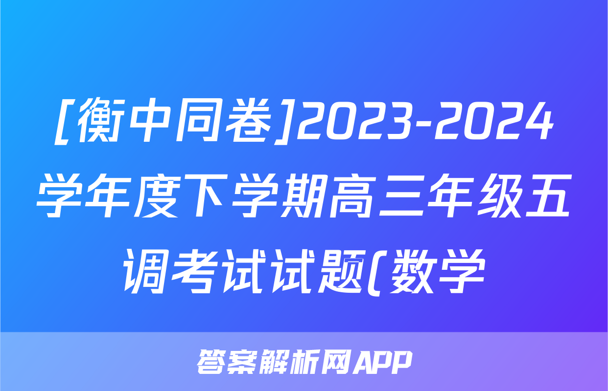 [衡中同卷]2023-2024学年度下学期高三年级五调考试试题(数学)正在持续更新,目前2026届黄冈八模答案网为大家整理了相关试题及答案,供大家查缺补漏,高效提升成绩。