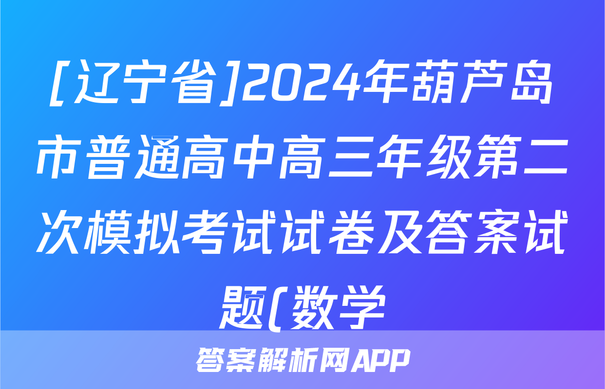 [辽宁省]2024年葫芦岛市普通高中高三年级第二次模拟考试试卷及答案试题(数学)正在持续更新,目前2026届黄冈八模答案网为大家整理了相关试题及答案,供大家查缺补漏,高效提升成绩。