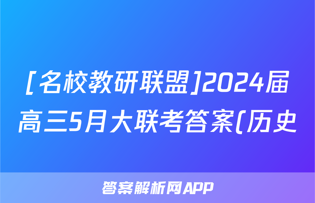 [名校教研联盟]2024届高三5月大联考答案(历史)正在持续更新,目前2026届黄冈八模答案网为大家整理了相关试题及答案,供大家查缺补漏,高效提升成绩。