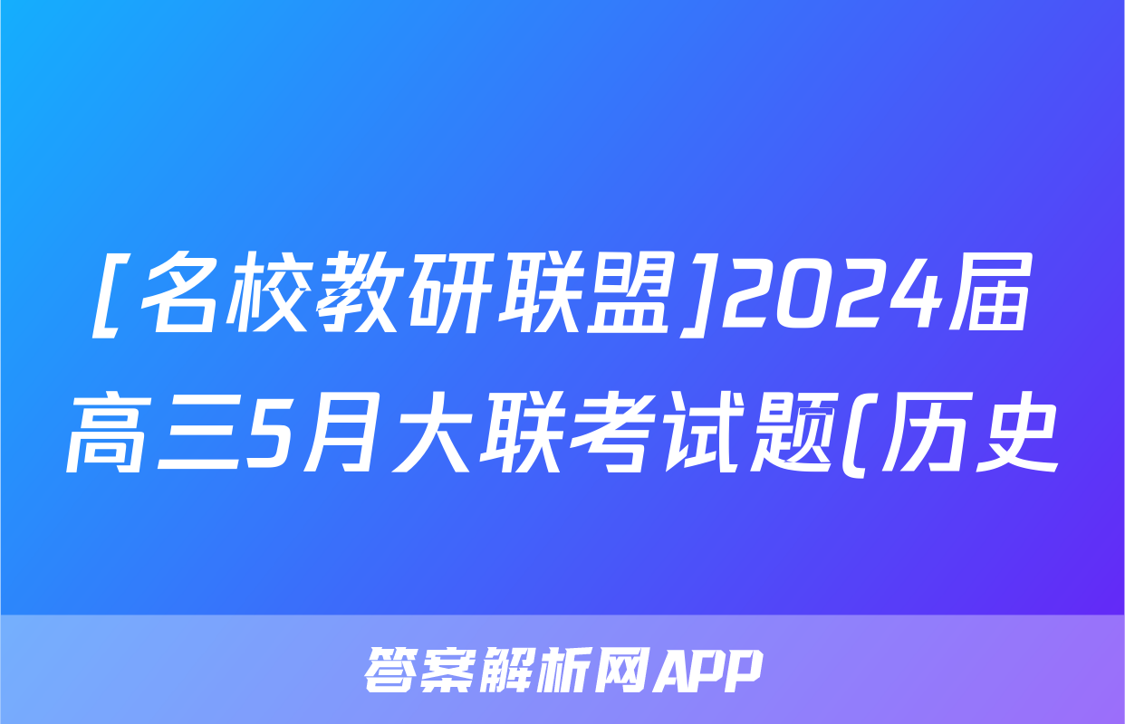 [名校教研联盟]2024届高三5月大联考试题(历史)正在持续更新,目前2026届黄冈八模答案网为大家整理了相关试题及答案,供大家查缺补漏,高效提升成绩。