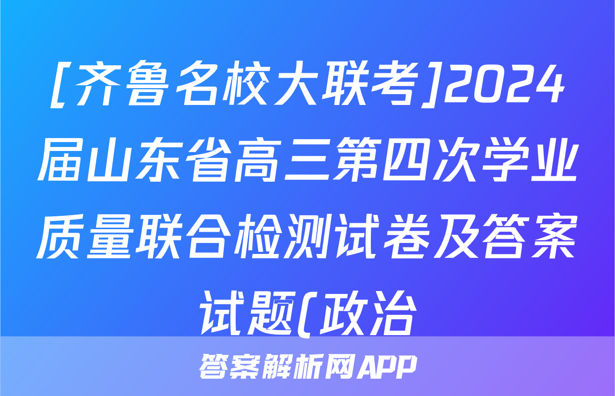 [齐鲁名校大联考]2024届山东省高三第四次学业质量联合检测试卷及答案试题(政治)正在持续更新,目前2026届黄冈八模答案网为大家整理了相关试题及答案,供大家查缺补漏,高效提升成绩。