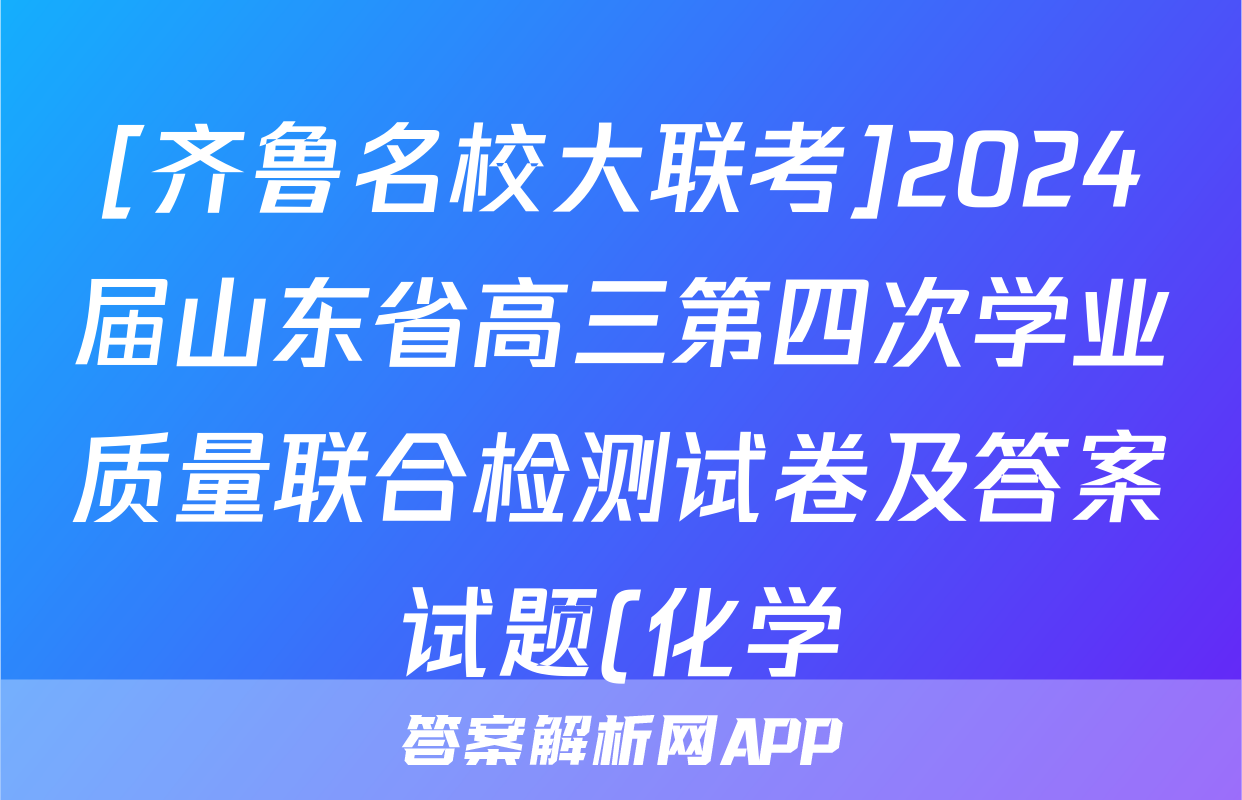 [齐鲁名校大联考]2024届山东省高三第四次学业质量联合检测试卷及答案试题(化学)正在持续更新,目前2026届黄冈八模答案网为大家整理了相关试题及答案,供大家查缺补漏,高效提升成绩。