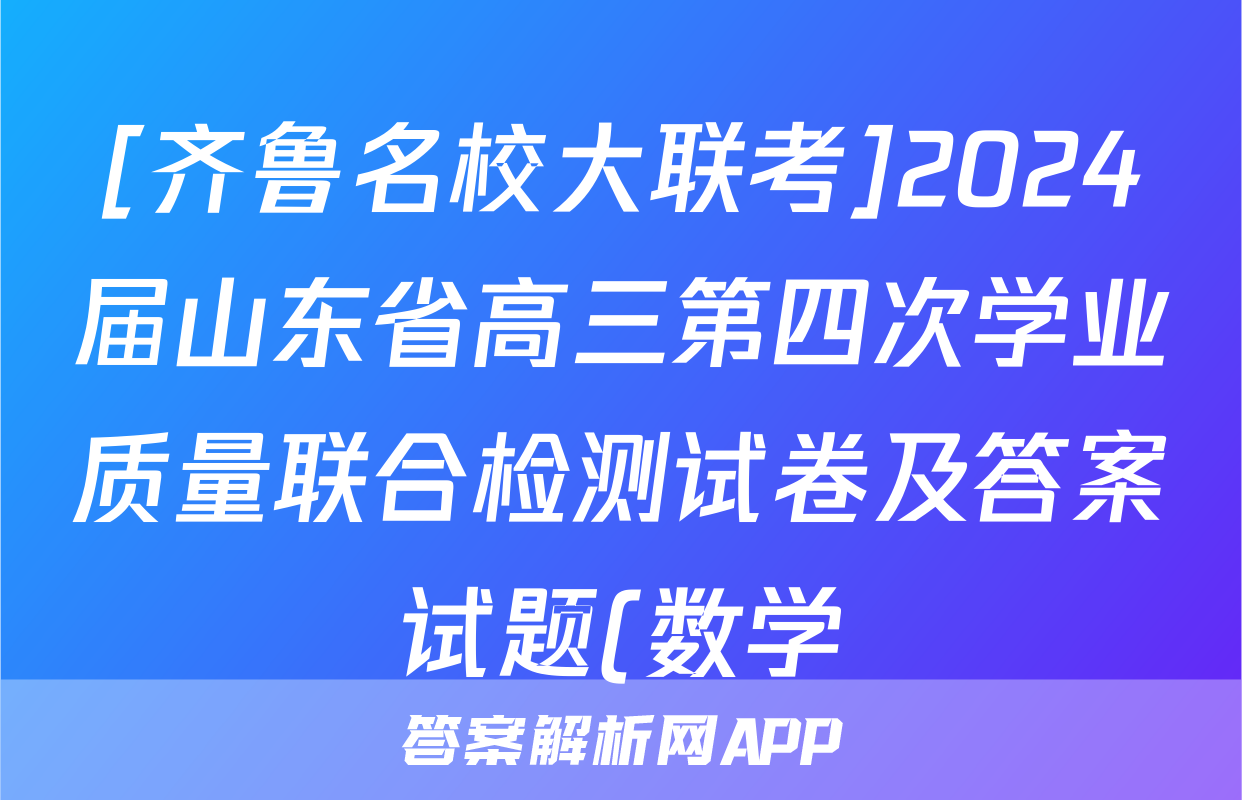 [齐鲁名校大联考]2024届山东省高三第四次学业质量联合检测试卷及答案试题(数学)正在持续更新,目前2026届黄冈八模答案网为大家整理了相关试题及答案,供大家查缺补漏,高效提升成绩。