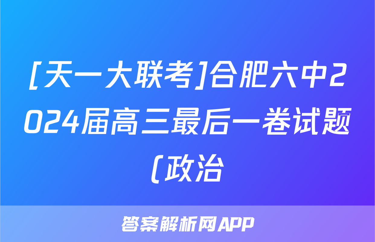 [天一大联考]合肥六中2024届高三最后一卷试题(政治)正在持续更新,目前2026届黄冈八模答案网为大家整理了相关试题及答案,供大家查缺补漏,高效提升成绩。