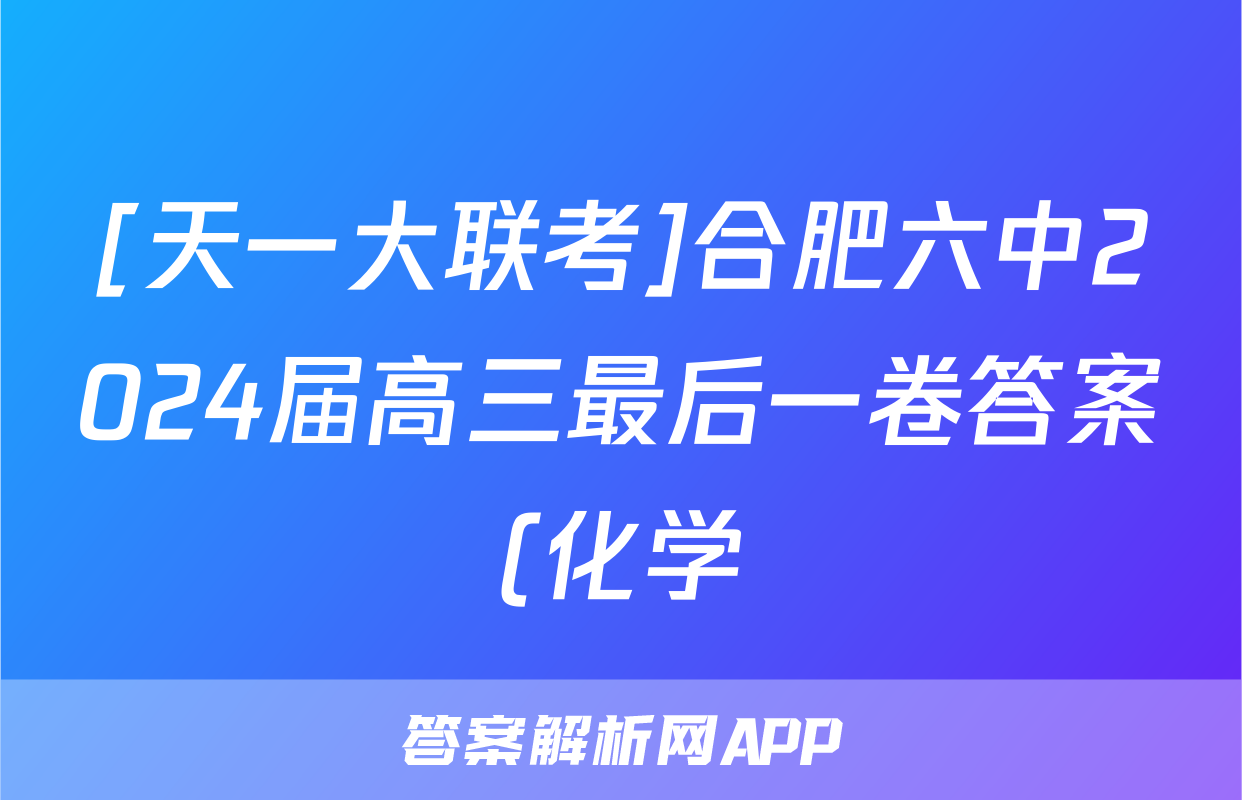[天一大联考]合肥六中2024届高三最后一卷答案(化学)正在持续更新,目前2026届黄冈八模答案网为大家整理了相关试题及答案,供大家查缺补漏,高效提升成绩。