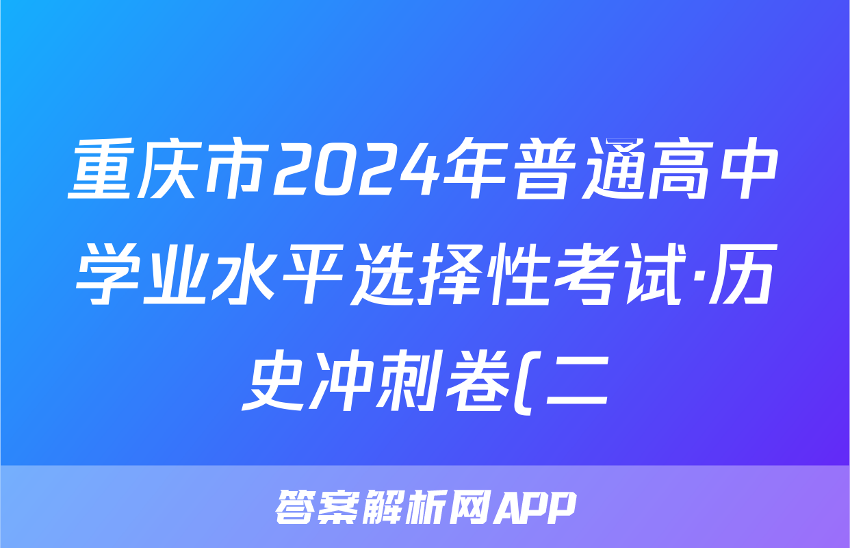 重庆市2024年普通高中学业水平选择性考试·历史冲刺卷(二)2[24·(新高考)CCJ·历史·CQ]答案正在持续更新,目前2026届黄冈八模答案网为大家整理了相关试题及答案,供大家查缺补漏,高效提升成绩。