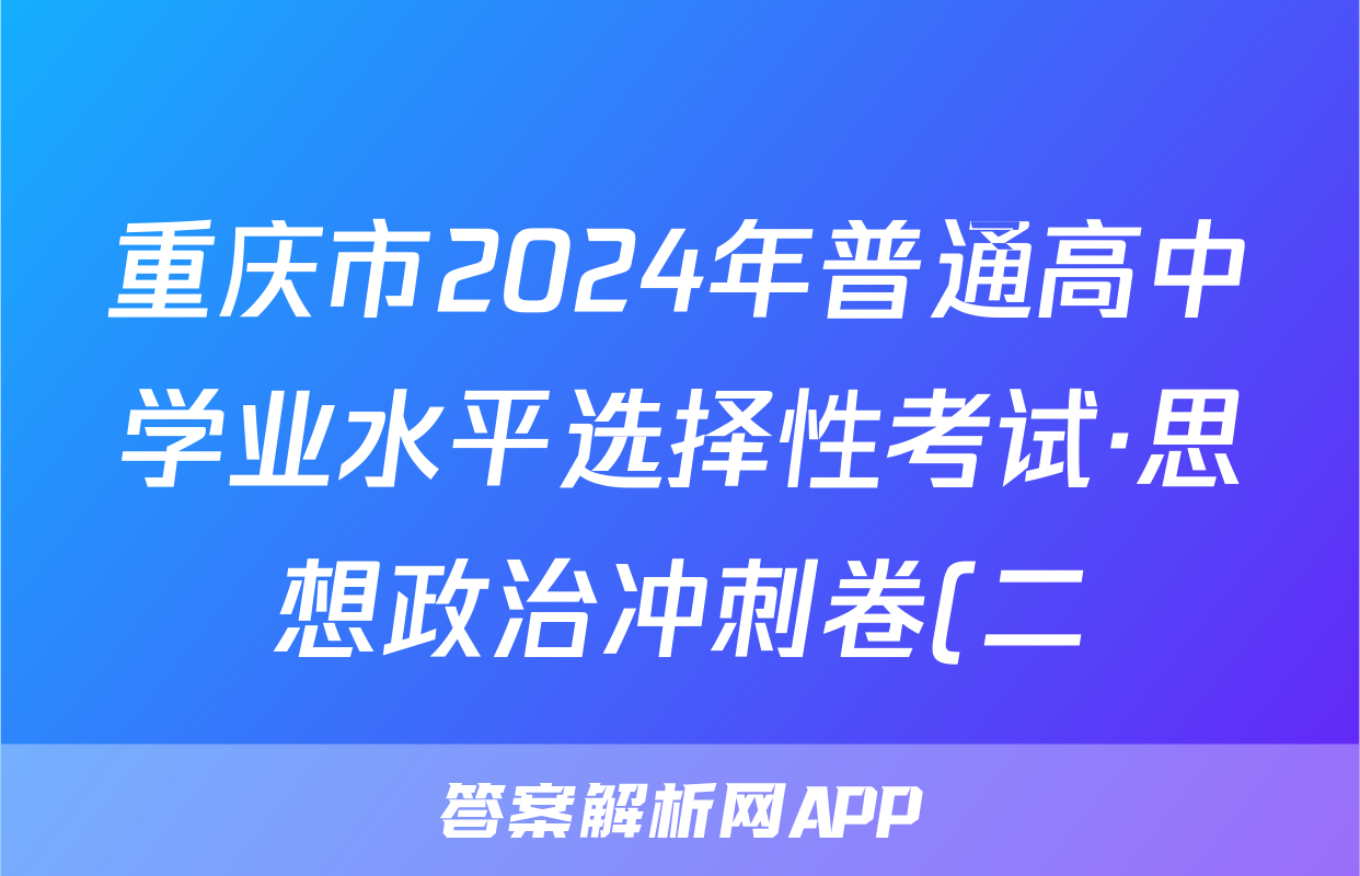 重庆市2024年普通高中学业水平选择性考试·思想政治冲刺卷(二)2[24·(新高考)CCJ·思想政治·CQ]答案正在持续更新,目前2026届黄冈八模答案网为大家整理了相关试题及答案,供大家查缺补漏,高效提升成绩。
