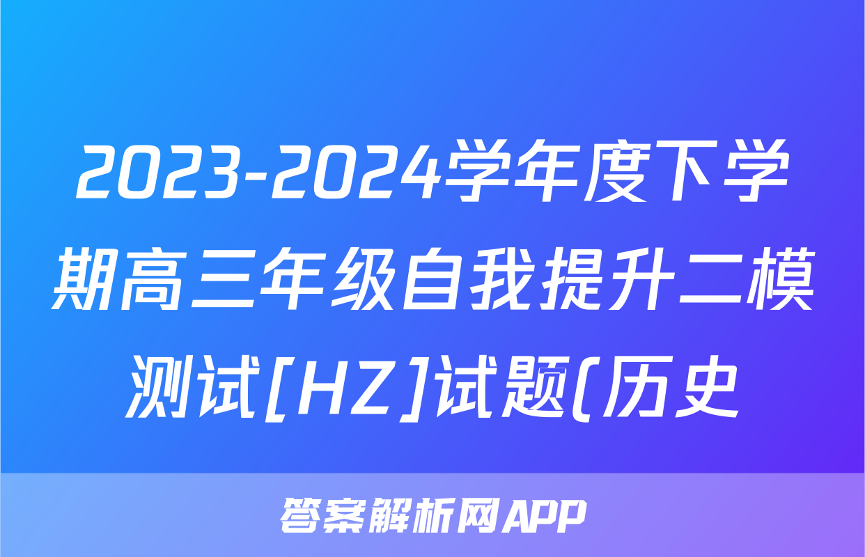 2023-2024学年度下学期高三年级自我提升二模测试[HZ]试题(历史)正在持续更新,目前2026届黄冈八模答案网为大家整理了相关试题及答案,供大家查缺补漏,高效提升成绩。