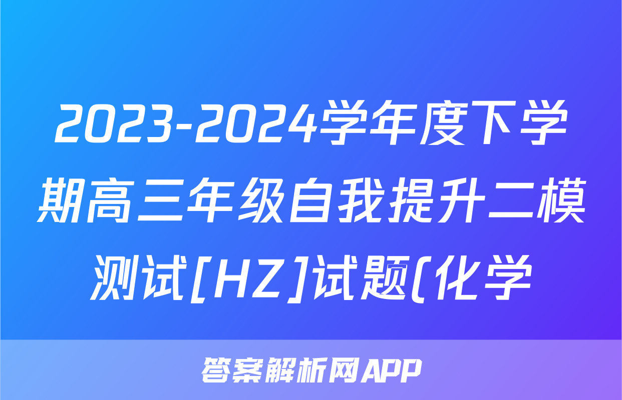 2023-2024学年度下学期高三年级自我提升二模测试[HZ]试题(化学)正在持续更新,目前2026届黄冈八模答案网为大家整理了相关试题及答案,供大家查缺补漏,高效提升成绩。
