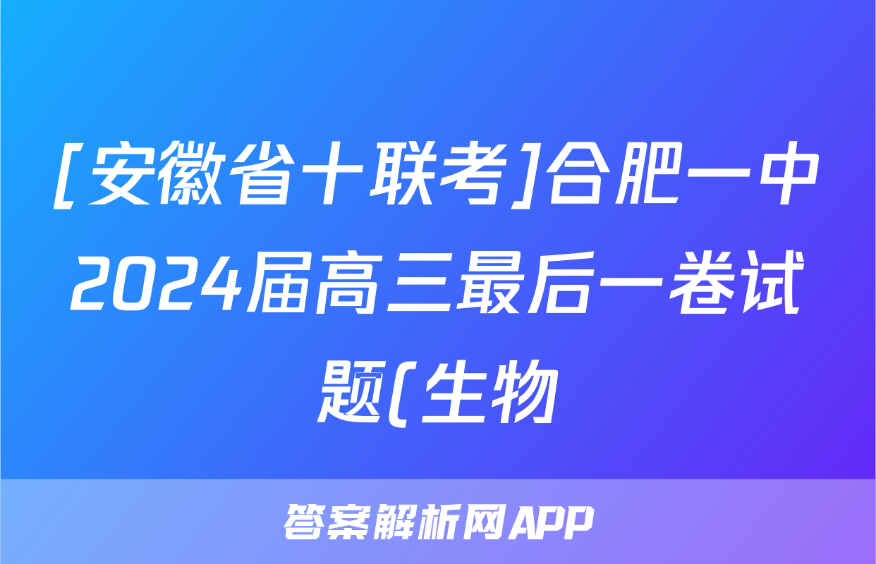 [安徽省十联考]合肥一中2024届高三最后一卷试题(生物)正在持续更新,目前2026届黄冈八模答案网为大家整理了相关试题及答案,供大家查缺补漏,高效提升成绩。