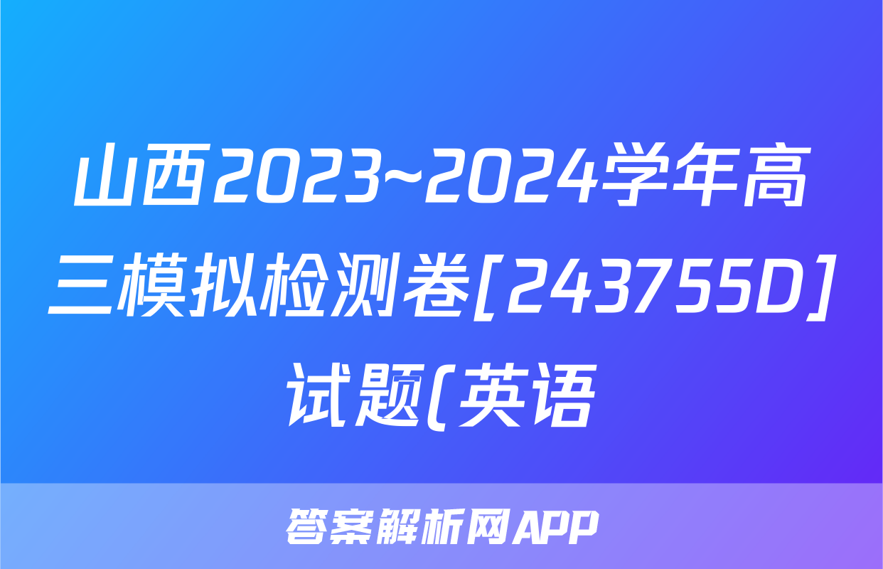 山西2023~2024学年高三模拟检测卷[243755D]试题(英语)正在持续更新,目前2026届黄冈八模答案网为大家整理了相关试题及答案,供大家查缺补漏,高效提升成绩。