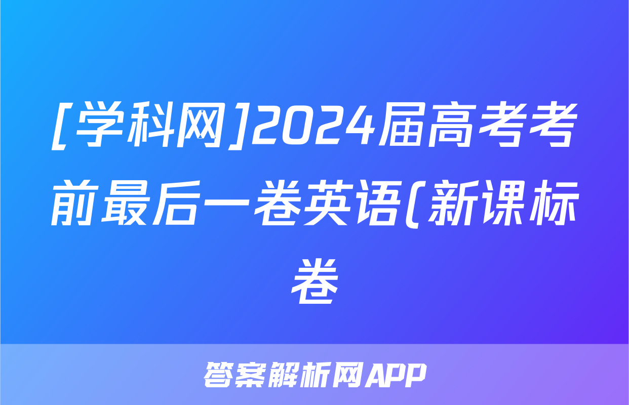 [学科网]2024届高考考前最后一卷英语(新课标卷)答案正在持续更新,目前2026届黄冈八模答案网为大家整理了相关试题及答案,供大家查缺补漏,高效提升成绩。