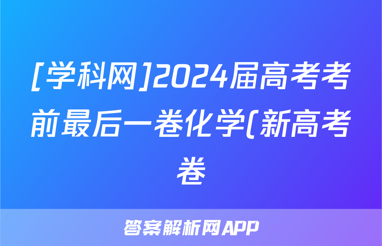 [学科网]2024届高考考前最后一卷化学(新高考卷)(新教材)试题正在持续更新,目前2026届黄冈八模答案网为大家整理了相关试题及答案,供大家查缺补漏,高效提升成绩。