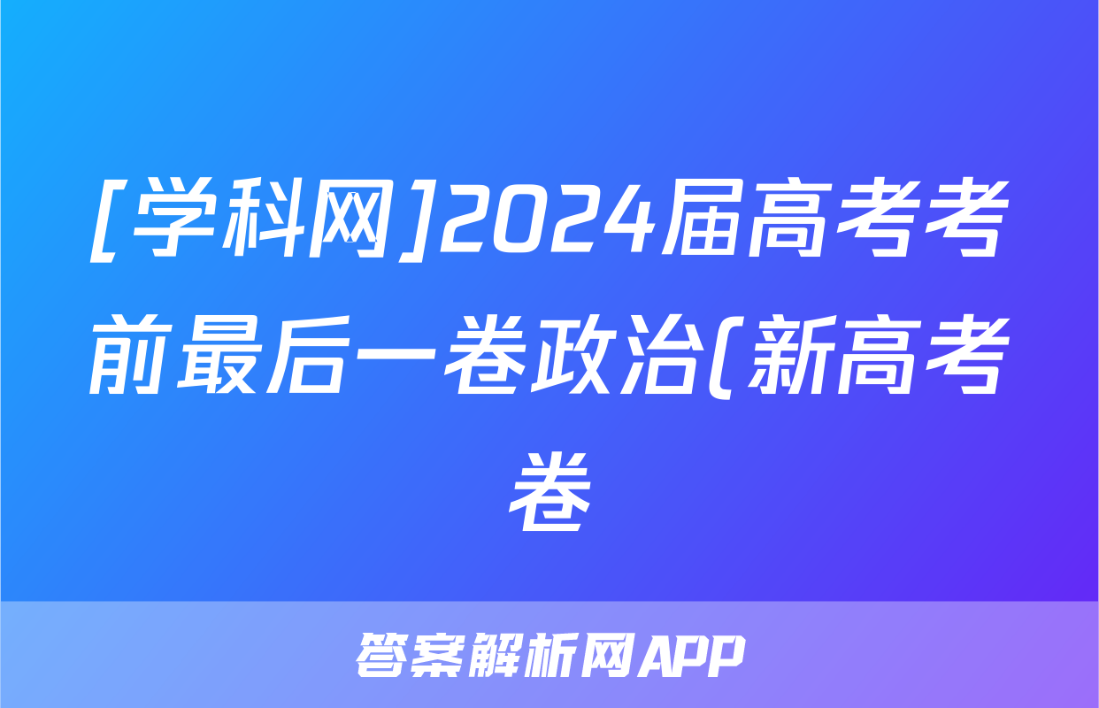 [学科网]2024届高考考前最后一卷政治(新高考卷)(新教材)试题正在持续更新,目前2026届黄冈八模答案网为大家整理了相关试题及答案,供大家查缺补漏,高效提升成绩。