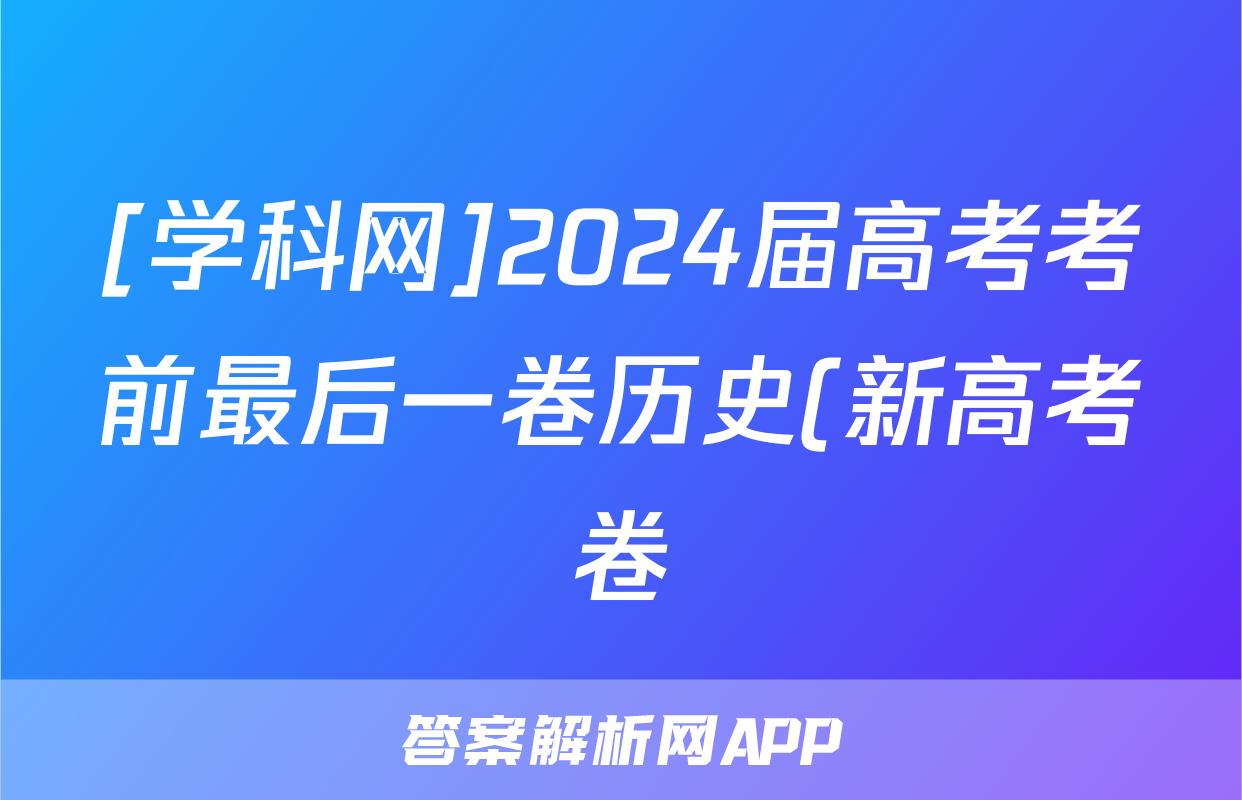[学科网]2024届高考考前最后一卷历史(新高考卷)(新教材)试题正在持续更新,目前2026届黄冈八模答案网为大家整理了相关试题及答案,供大家查缺补漏,高效提升成绩。