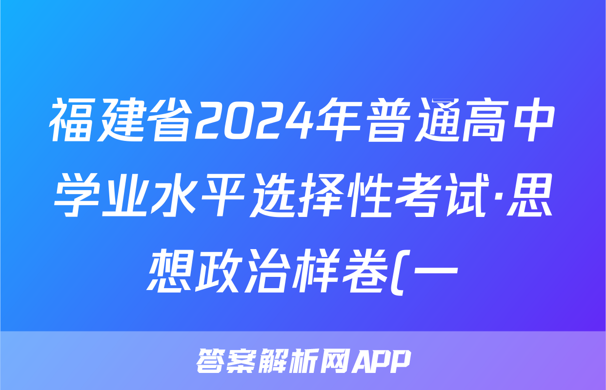 福建省2024年普通高中学业水平选择性考试·思想政治样卷(一)1[24·(新高考)高考样卷·思想政治·FJ]答案正在持续更新,目前2026届黄冈八模答案网为大家整理了相关试题及答案,供大家查缺补漏,高效提升成绩。