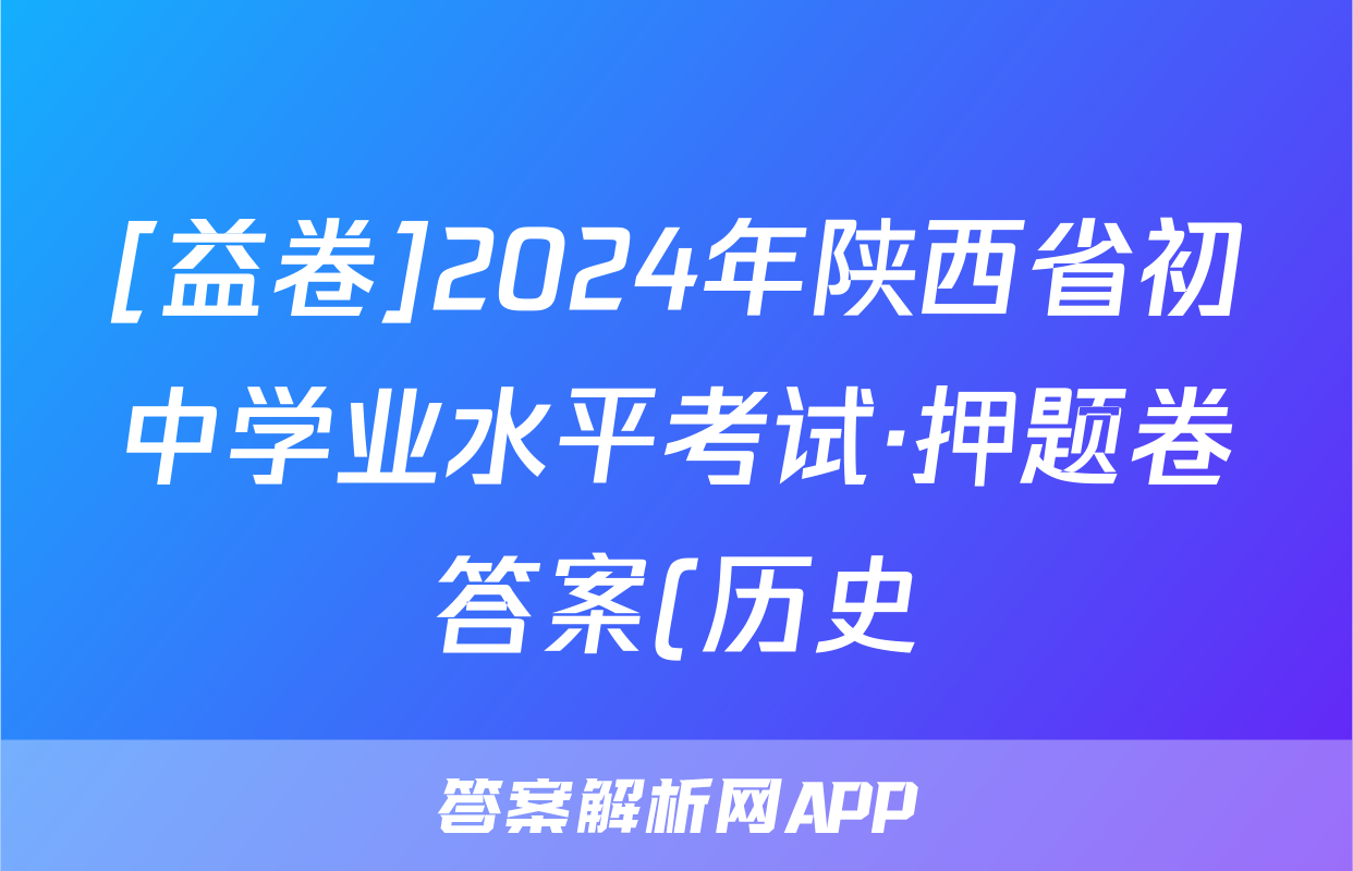[益卷]2024年陕西省初中学业水平考试·押题卷答案(历史)正在持续更新,目前2026届黄冈八模答案网为大家整理了相关试题及答案,供大家查缺补漏,高效提升成绩。