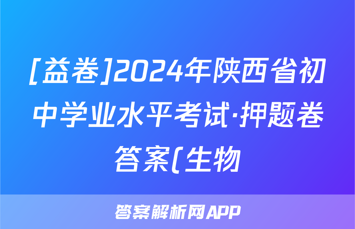 [益卷]2024年陕西省初中学业水平考试·押题卷答案(生物)正在持续更新,目前2026届黄冈八模答案网为大家整理了相关试题及答案,供大家查缺补漏,高效提升成绩。