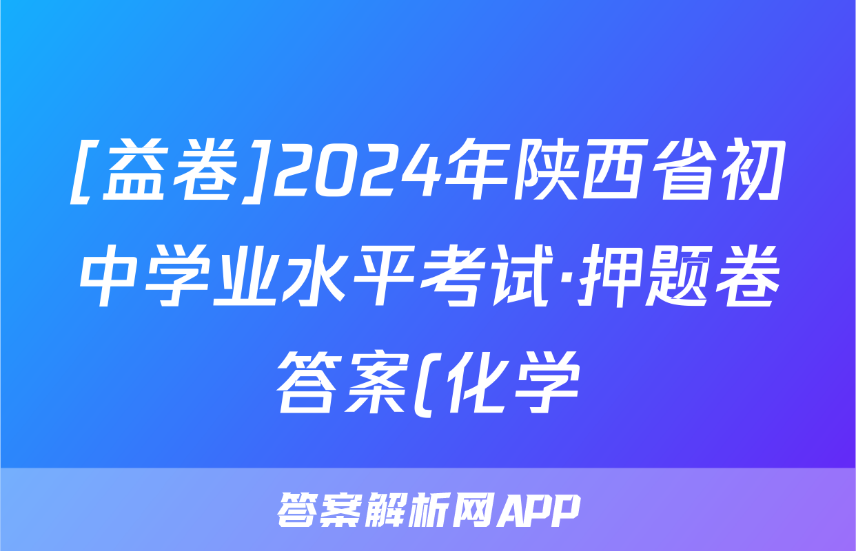 [益卷]2024年陕西省初中学业水平考试·押题卷答案(化学)正在持续更新,目前2026届黄冈八模答案网为大家整理了相关试题及答案,供大家查缺补漏,高效提升成绩。