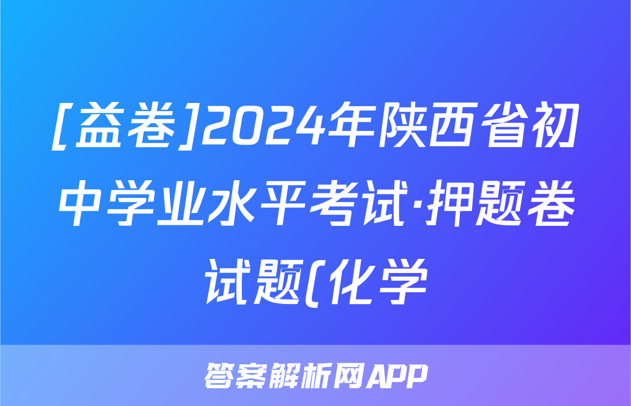 [益卷]2024年陕西省初中学业水平考试·押题卷试题(化学)正在持续更新,目前2026届黄冈八模答案网为大家整理了相关试题及答案,供大家查缺补漏,高效提升成绩。