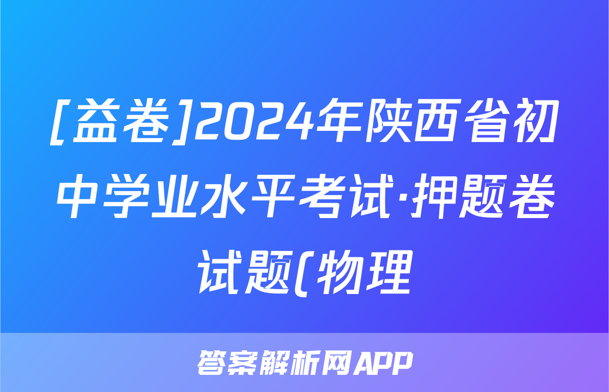 [益卷]2024年陕西省初中学业水平考试·押题卷试题(物理)正在持续更新,目前2026届黄冈八模答案网为大家整理了相关试题及答案,供大家查缺补漏,高效提升成绩。