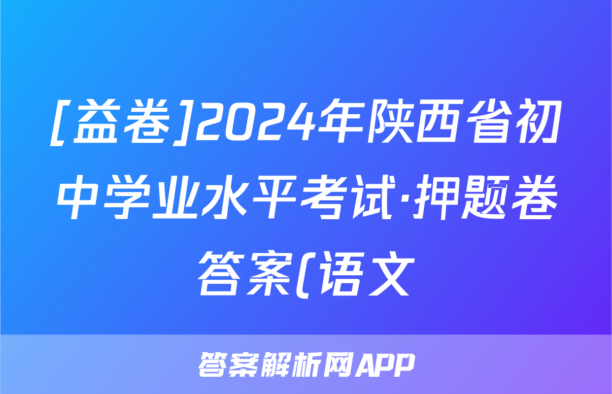 [益卷]2024年陕西省初中学业水平考试·押题卷答案(语文)正在持续更新,目前2026届黄冈八模答案网为大家整理了相关试题及答案,供大家查缺补漏,高效提升成绩。