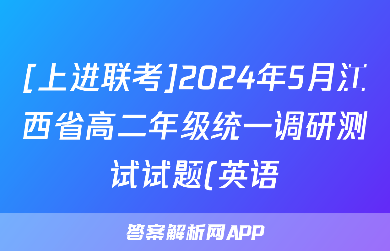 [上进联考]2024年5月江西省高二年级统一调研测试试题(英语)正在持续更新,目前2026届黄冈八模答案网为大家整理了相关试题及答案,供大家查缺补漏,高效提升成绩。