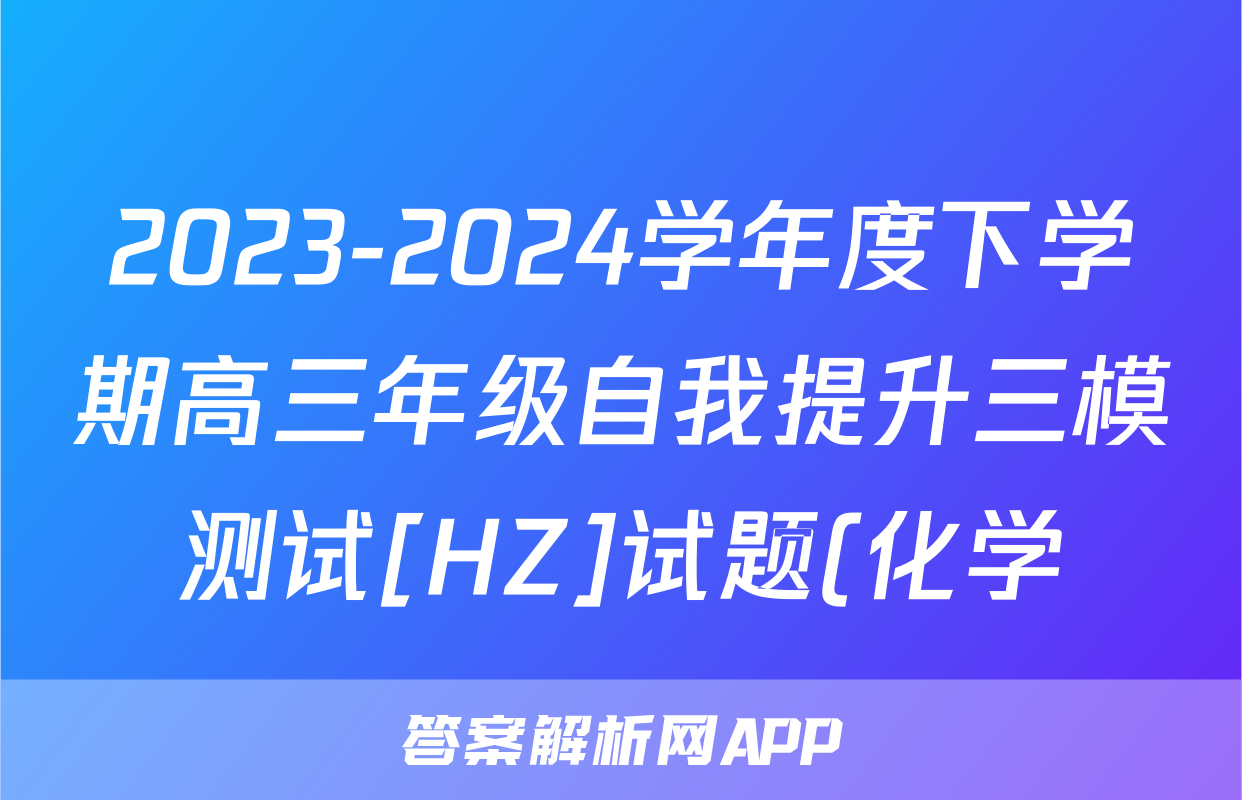 2023-2024学年度下学期高三年级自我提升三模测试[HZ]试题(化学)正在持续更新,目前2026届黄冈八模答案网为大家整理了相关试题及答案,供大家查缺补漏,高效提升成绩。