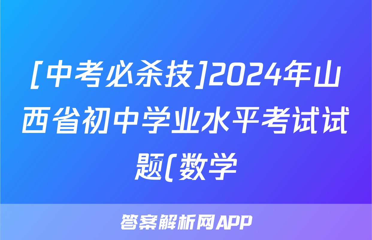 [中考必杀技]2024年山西省初中学业水平考试试题(数学)
