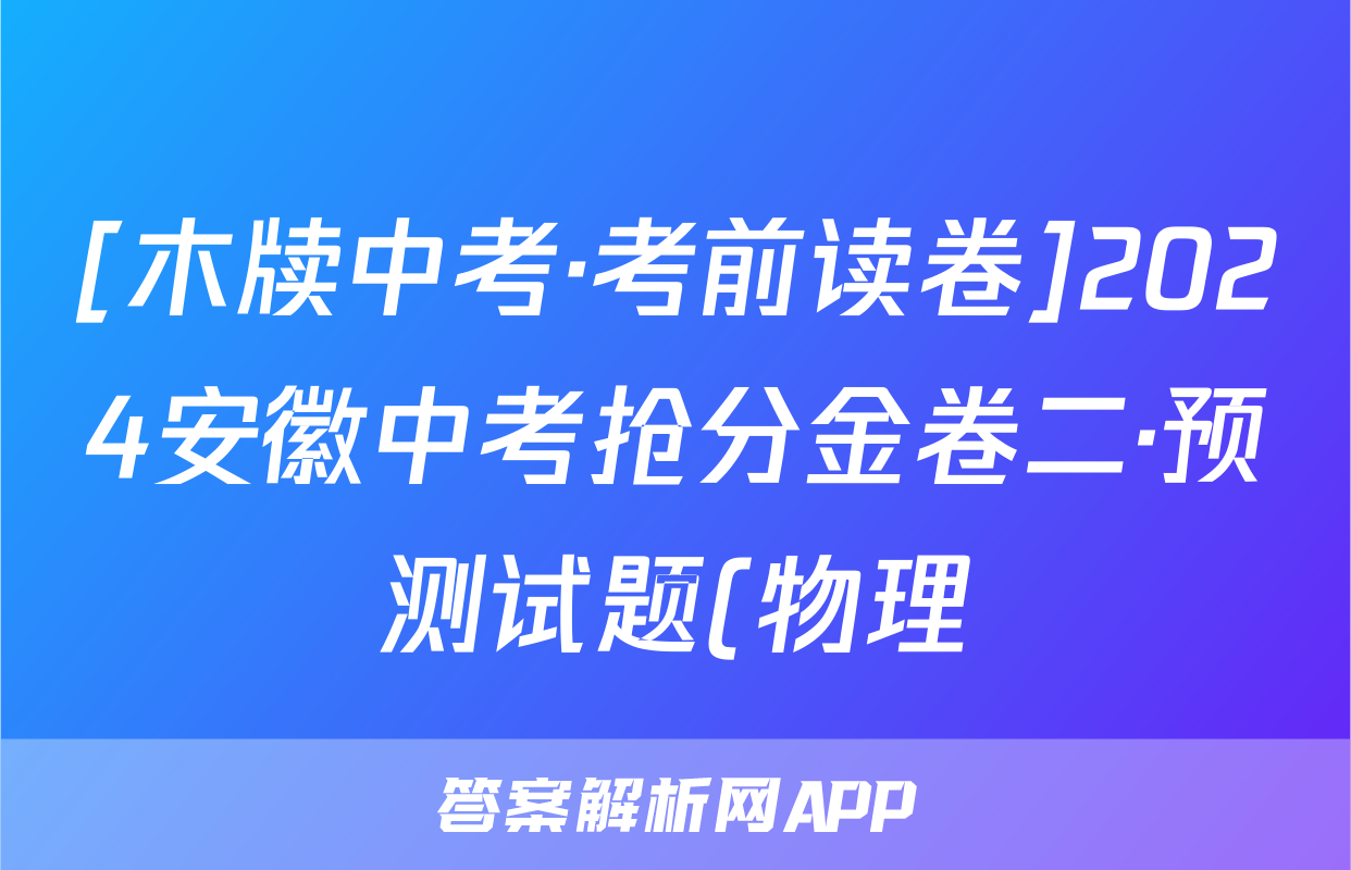 [木牍中考·考前读卷]2024安徽中考抢分金卷二·预测试题(物理)正在持续更新,目前2026届黄冈八模答案网为大家整理了相关试题及答案,供大家查缺补漏,高效提升成绩。